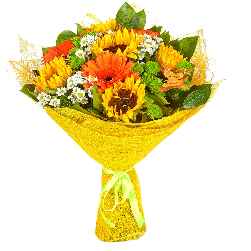 Гербера 3 шт., Подсолнух 5 шт., Танацетум 5 шт., Хризантема 4 шт. |
